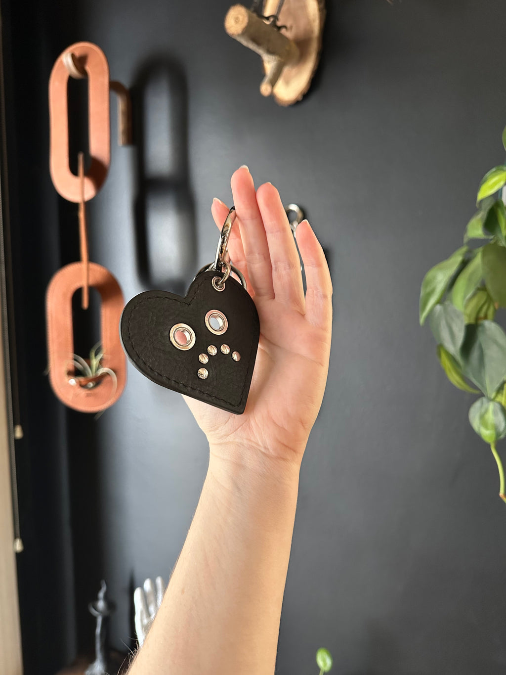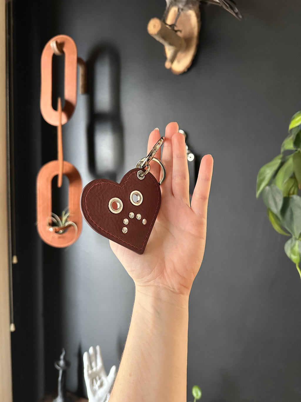 One smiley side, one frowny side. Charms are made with our bag materials and hardware. A statement piece to clip to your bag, or use independently as a keychain. Comes with keyring.